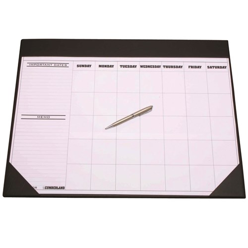 Includes a full monthly planner sheet. Corners and strip across the top of the mat hold the planner in place. Refill pads available.