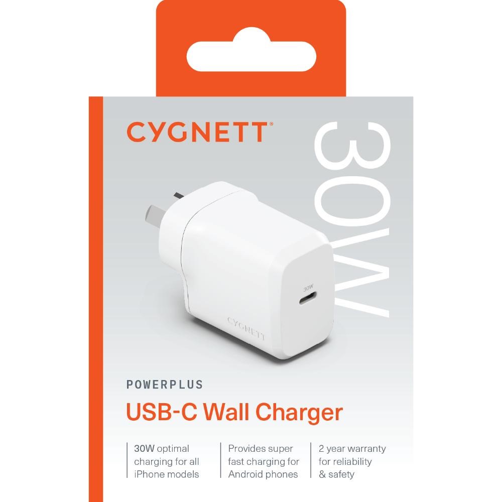 Cygnett PowerPlus 30W GaN USB-C Fast Wall Charger White