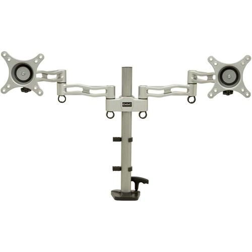 Easy to assemble monitor arms which allows you to free up desk space and position monitors at the correct ergonomic position. Suitable for monitors 33-69cm weighing up to 10kg. The monitor can be rotated 360 degrees allowing for both portrait and landscape viewing. The monitor can be tilted +/- 15 degrees. Post height is 41cm. Cable clip keeps cords organised. Arms can be locked tight for touch screen applications. Articulating monitor can extend up to 41.3cm. Installs via a clamp to your desk. Fits up to 5cm thick desks.