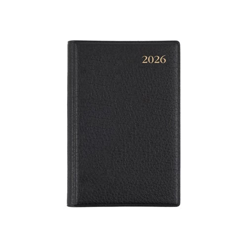 Bound in a rigid leather-look PVC cover. Australian and New Zealand holidays. Recycled paper and a satin ribbon marker. No appointment times. 3 year calendars. Notes. Current and forward year planners. Size: 125 x 80mm. FSC Certified.