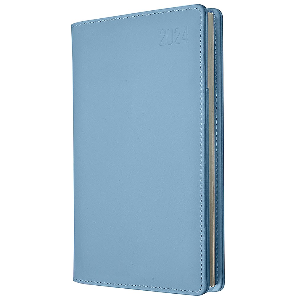 The Associate II diary offers the sought after 'lay-flat ' wiro binding and clean internal layouts in stylish Light Blue colour, with the addition of both document pocket and business card sleeve maximising versatility. Features: Lay Flat Opening Ribbon Marker Week to view layout Australian and New Zealand Holidays. 3 Year Calendars Current and Forward Year Planners International Holidays International Dialling and Time Zones Staff Leave Planner Addresses and Notes Soft-touch Padded Covers. Size: 187x99mm.