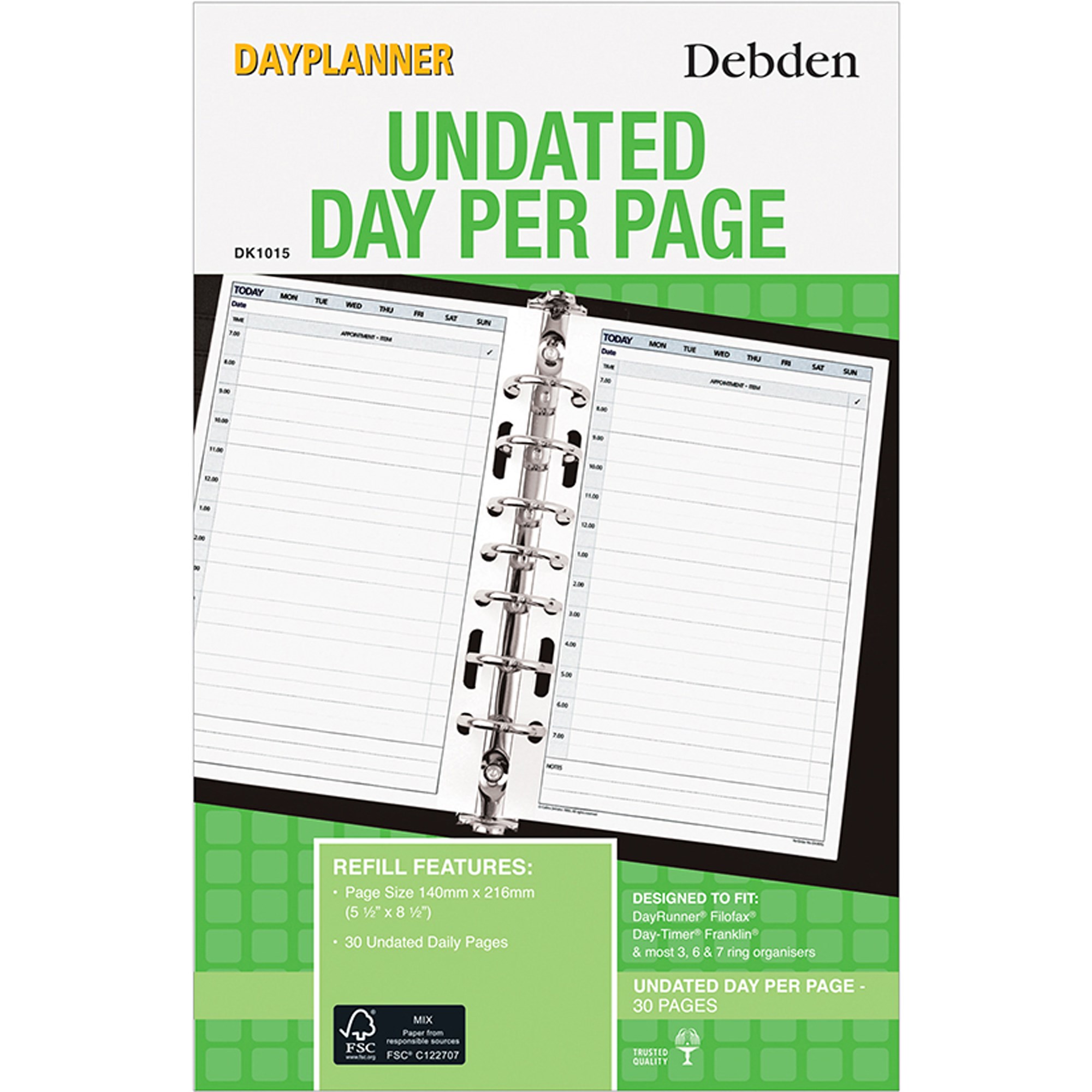 Suits most 3, 6 & 7 Ring Organisers on the market. (216x140mm) Manufacturing Code DK1015