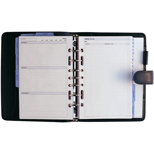 Fast becoming Australia's No.1 organiser. This 7 ring organiser offers the power to balance your personal and professional life. The DayPlanner desk edition will become your command centre giving you the ability to keep track of projects, finances and activities whilst staying on top and in control of your business days. Flexible and easy to use, this system can be tailored to meet individual needs by re-arranging sections, adding additional pages, or deleting those you don't need. Dimensions: 216x140mm. Cherry red also available.