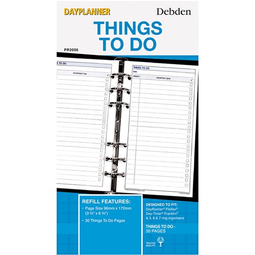 Debden Dayplanner Refill Things To Do 172x96mm Personal Edition