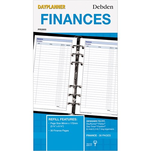 DEBDEN DAYPLANNER REFILL Finances 172x96mm Personal