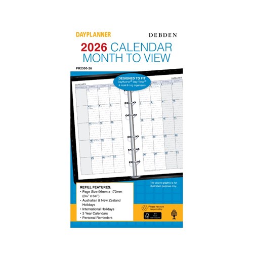 Debden Dayplanner Refill Personal 96 x 172mm Dated Month To View