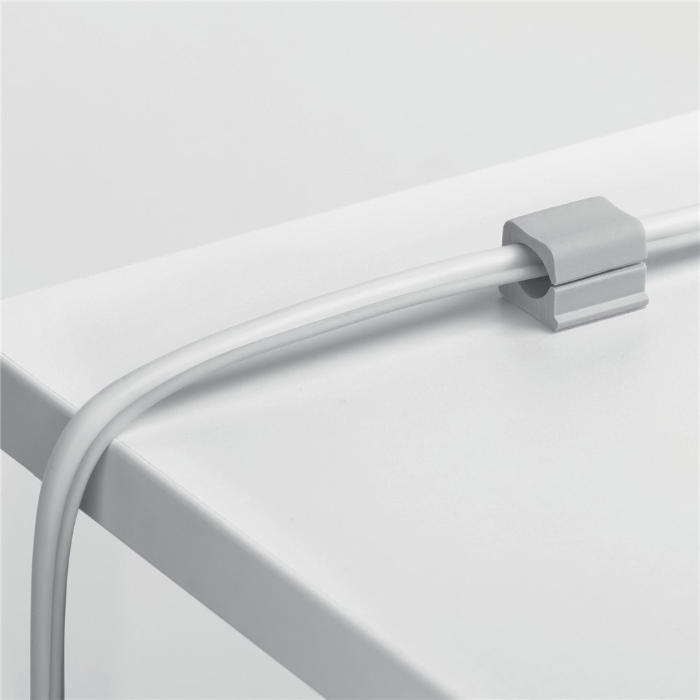 Self-adhesive cable clips for a power cable and a USB cable. High-quality and robust premium quality. Made of soft plastic with high elasticity. With strong adhesive tape and extra large adhesive surface. Can be used on smooth and cleaned surfaces. Dimensions: 25W x 20D x 25mmH.