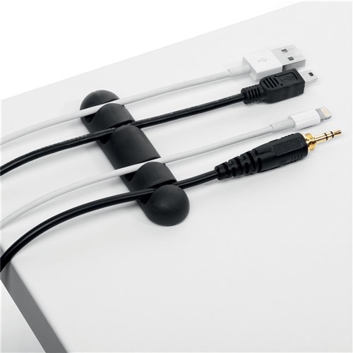 Self-adhesive cable clips for 4 USB cables. Made of soft plastic. Can be used on smooth and cleaned surfaces. Ideal for telephone and USB cables up to 5 mm in diameter. Dimensions: 20W x 82D x 12mmH.