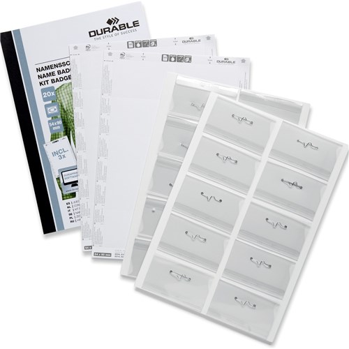 Durable Name Badge Set With Pin & Inserts 54x90mm Pack Of 20
