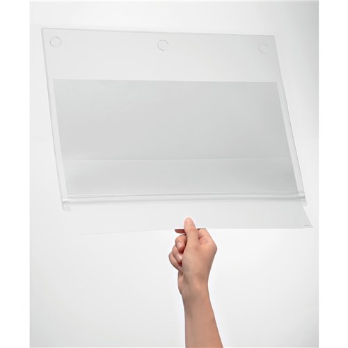 Water resistant, self-adhesive pockets for displaying notices or signs. The water proof pressure closure protects the contents against rain, humidity and dirt. Tested to IPX5 standards (can resist a sustained low pressure water jet spray). Can be used in portrait or landscape format. Anti-reflective.