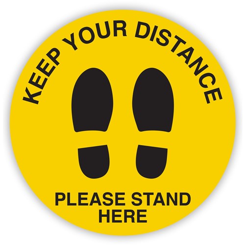 Size: 350mm diameter. Circular self adhesive printed PVC to ensure strength and durability. Can be used on most hard surfaces such as polished concrete, sealed timber and tiles. Yellow and Black in colour to ensure stand out. Slip resistance P3 rating. Easy to apply and can last up to 3 to 6 months.
