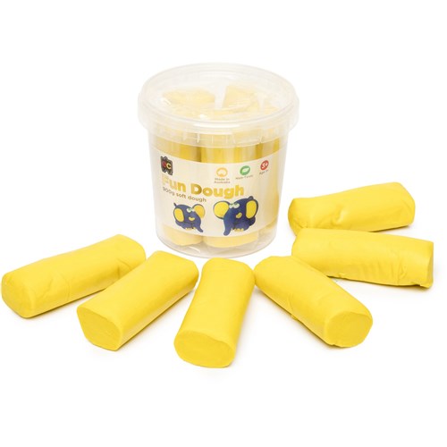Educational Colours Australian Made Fun Dough is safe, non-toxic and washable, making it ideal for young children and early model making Bright colours make it appealing for children to create fun artwork using their hands and dough tools Playing with dough is a sensory experience and also helps children develop hand to eye coordination and fine motor skills, making this a great activity for the classroom and home Large, re-usable tubs for easy storage available in Yellow