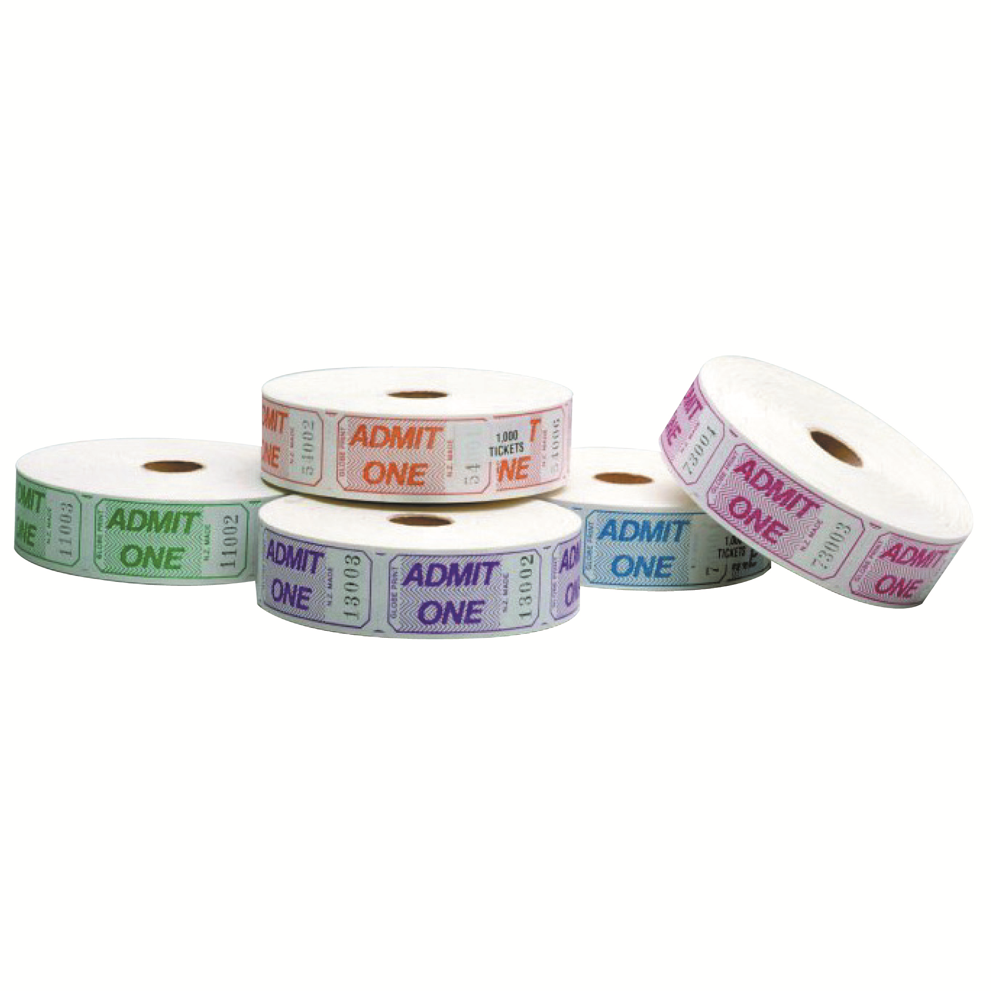 Each ticket is individually numbered and perforated Contains 1000 tickets per roll in each colour 5 Rolls per Pack