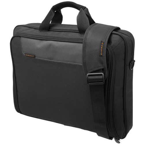 Accommodates up to 16 inch laptops. Extra-padded ergonomic non-slip shoulder pad Trolley handle pass-through strap. Separate zippered accessory compartment and front stash pocket. Backed by Everki Limited Lifetime Warranty.