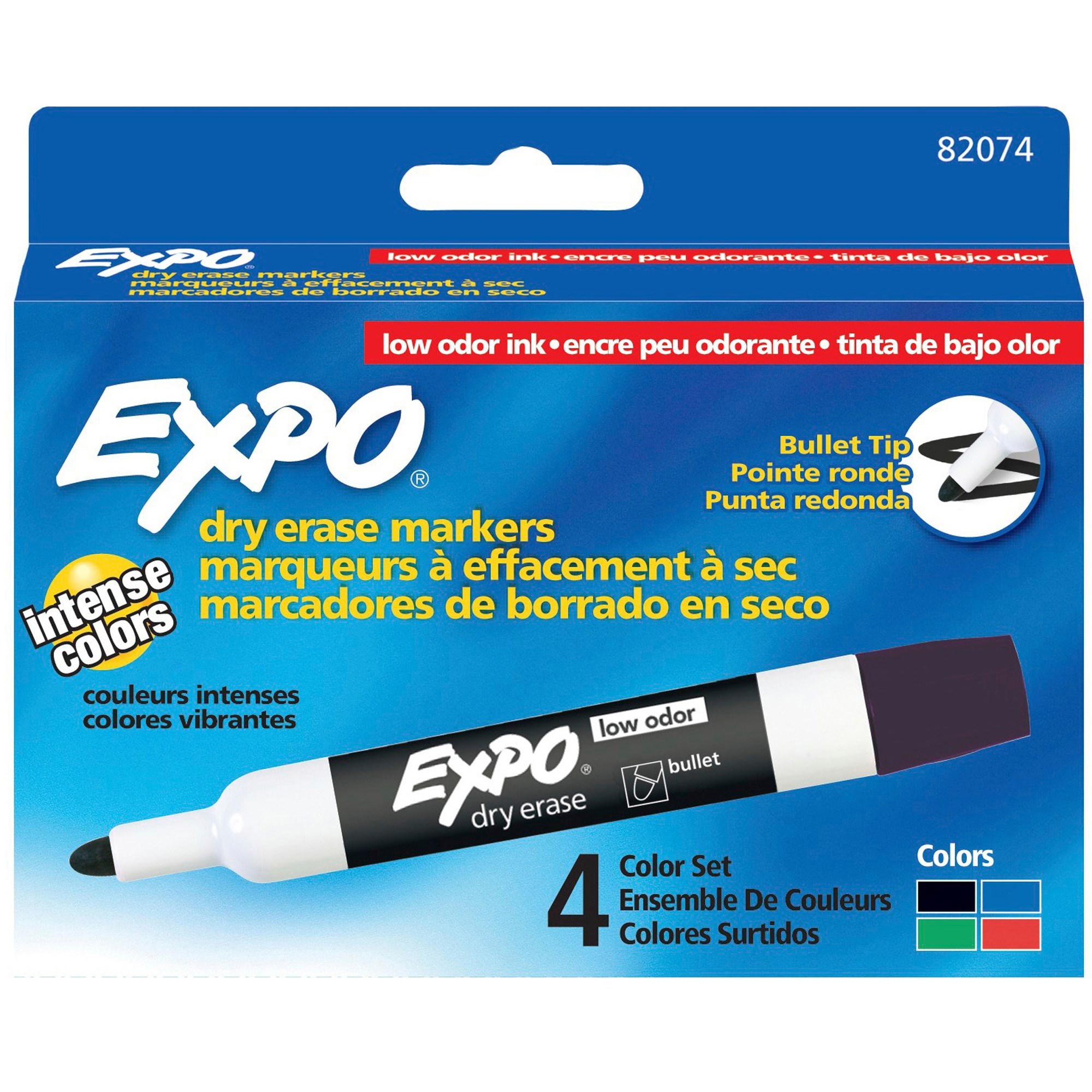 Use Expo Low Odor Dry Erase markers to track, schedule, and present your point in a brilliant fashion. Intense colors take center stage even from a distance. Same bright, vivid color now with better erasing ink! Add excitement, emphasis and color. Use new EXPO Ink. Specially formulated low odor ink is ideal for classrooms, small offices, and homes. Certified AP Non-toxic.