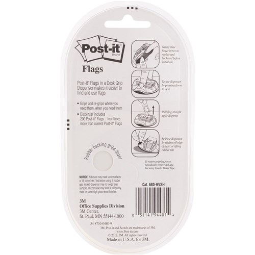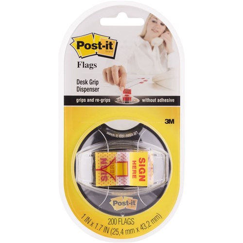 Keep flags clean and close at hand with the range of Post-it® Desk Grip Dispenser Value Packs. Each dispenser contains 200 flags which pop-up one at a time as you need. The handy dispenser suctions to most desk surfaces yet removes easily and cleanly.
