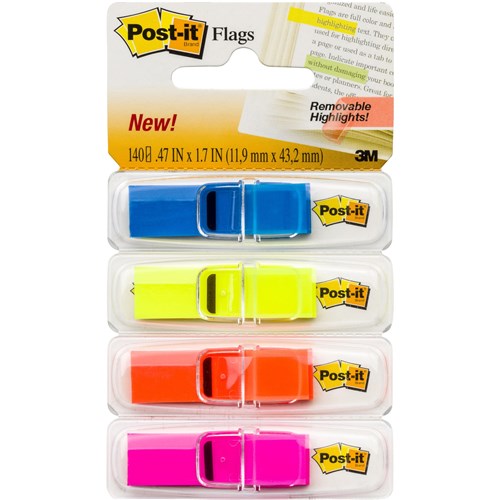 Post-It 683-4ABX Flag Translucent 12x45mm Blue Yellow Orange Pink Pack of 140