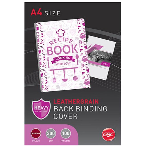 GBC Binding Cover A4 300gsm Leathergrain Pack Of 100 Maroon