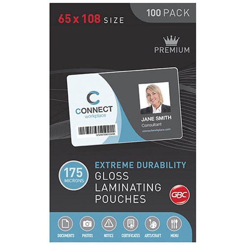GBC Laminating Pouches 65 X 108mm 175 Micron Gloss Pack Of 100