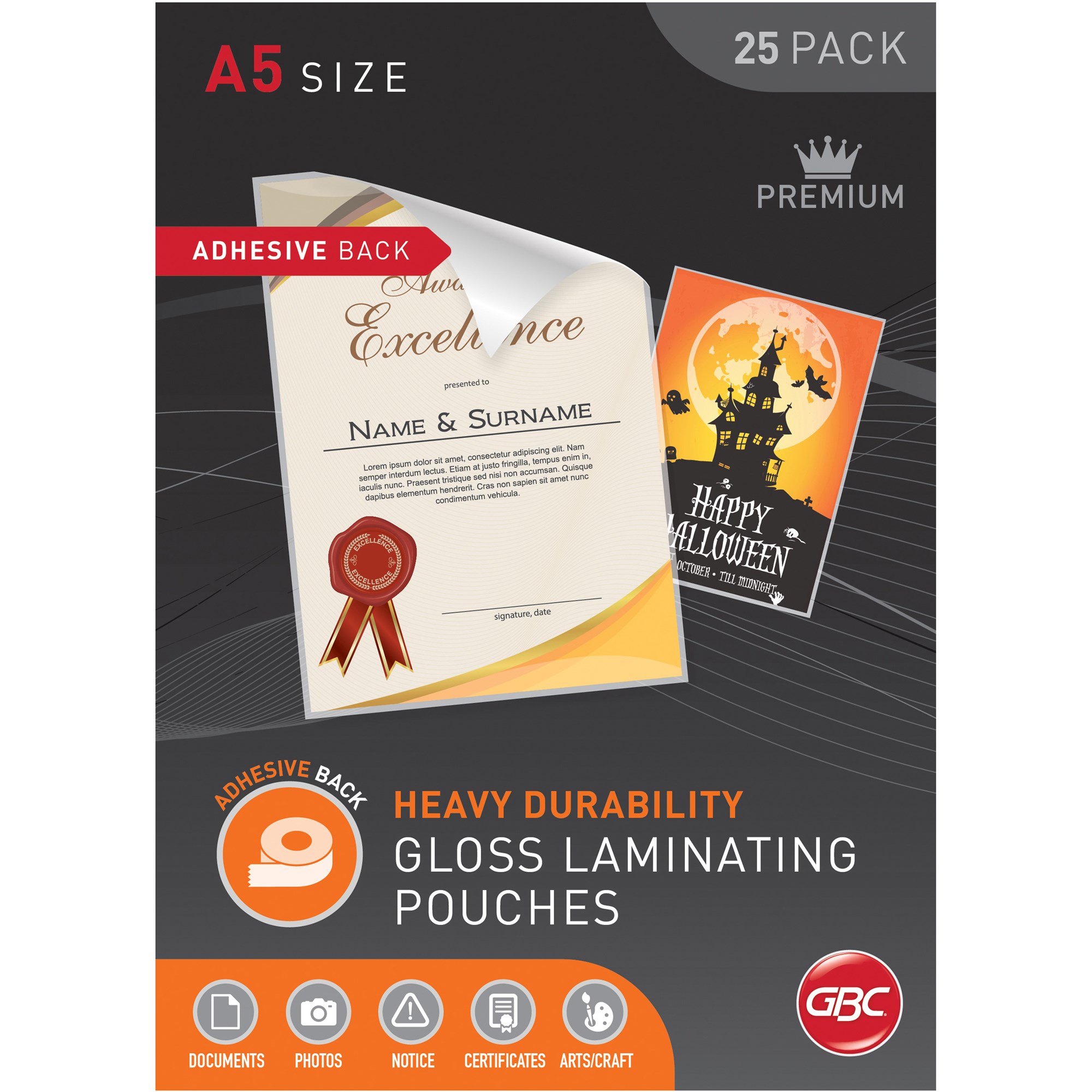 GBC Laminating Pouches A5 125 Micron Adhesive Back Gloss Pack Of 25