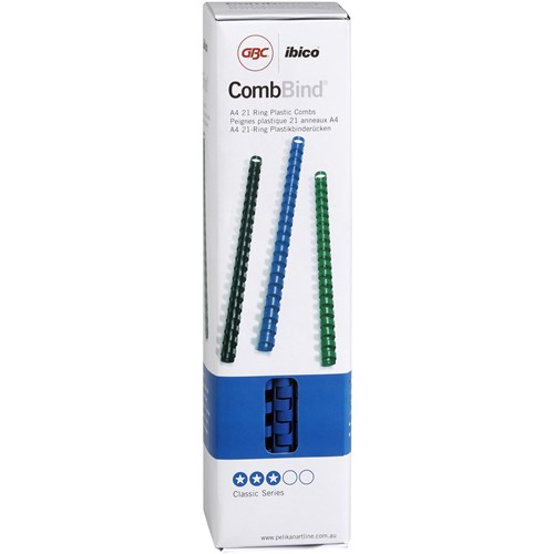 High quality plastic combs for use with all standard binding machines. Available in an array of colours and sizes from 6mm to 51mm. Combs can be reopened to insert or remove pages at any time. Allows for finished documents to lie flat when turning pages. Plastic combs are cost effective and durable.