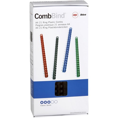 High quality plastic combs for use with all standard binding machines. Available in an array of colours and sizes from 6mm to 51mm. Combs can be reopened to insert or remove pages at any time. Allows for finished documents to lie flat when turning pages. Plastic combs are cost effective and durable.