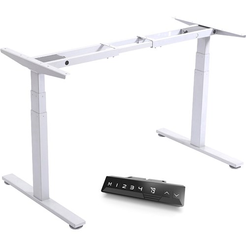 Frame Size: 1000-1800W x 700D x 600-1250mmH. Depth is including legs - actual desk top frame depth is 575mm. Suits top size from 1000 -1800mmW. Minimum depth of the desktop recommended is 600mm. 25mm thick table top is recommended. Heavy duty steel construction ensuring increased stability. Easy to use 4 stage memory storage height. Auto stop function. Load capacity: 1200N, maximum lift capacity is 120kg, speed at full load: 35mm/S. All adjustments for the height are infinitely locking. Solid steel frame construction with a powder coated finish. 2 motors. Some assembly required. AFRDI approved. 5 Year Manufacturer's Warranty On Electrical Components. 10 Year Manufacturer's Warranty On Table Frame. Delivery, installation and assembly charges may apply to furniture. Please enquire to confirm.