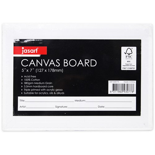 Pure cotton canvas boards, triple primed with quality acrylic gesso. Acid-free. Suitable for painting with acrylics, oils & alkyds.