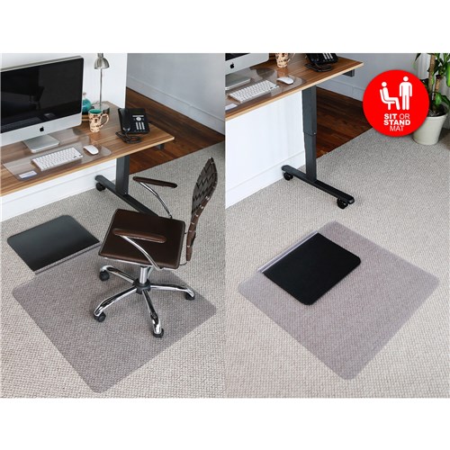 • This all-in-one mat offers a unique, dual sit to stand design solution that promotes good health and increases productivity. Innovative hinge folds for an anti-fatigue cushion and unfolds to full size chair mat.