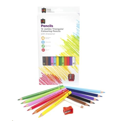 Jumbo Triangular Washable Pencils 12pc & Sharpener