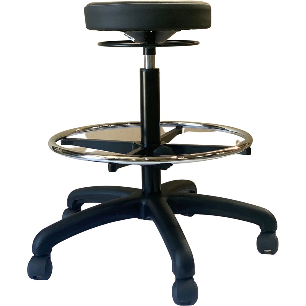 Chair Capacity: 120Kg. Composition: Vinyl Commercial Seat. AFRDI 640mm Commercial Grade Nylon Base. Twin Wheel Castors. AFRDI Adjustment 140mm Gas Lift. Overall Size: 450 - 550mm. Seat Width: 300mm Diameter. Durable and chemical resistant seat. Indicative Seating Time: 8 Hours. Assembly Required: No tools required. 5 Years Manufacturer's Warranty. Delivery, installation and assembly charges may apply to furniture. Please enquire to confirm.