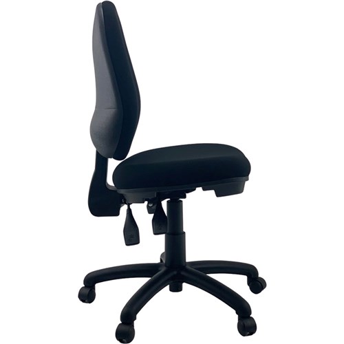 Weight Rating: 135kg Chair Dimension: Seat Width 500mm, Seat Depth 460mm, Back Height: 520mm. Unit Weight: 12Kg. NTR Commercial Grade Fabric Black Back with Moulded Seat Foam for Supreme Comfort. 3 Lever Easy to Use Heavy Duty Ratchet Mechanism. Seat angle, back tilt, and seat height adjustment. 5 Way 640mm Commercial Grade Nylon Base. Heavy Duty Gas Lift Cylinder. Fire Retardant Contoured Moulded Foam. 7 Years Manufacturer's Warranty. Delivery, installation and assembly charges may apply to furniture. Please enquire to confirm.