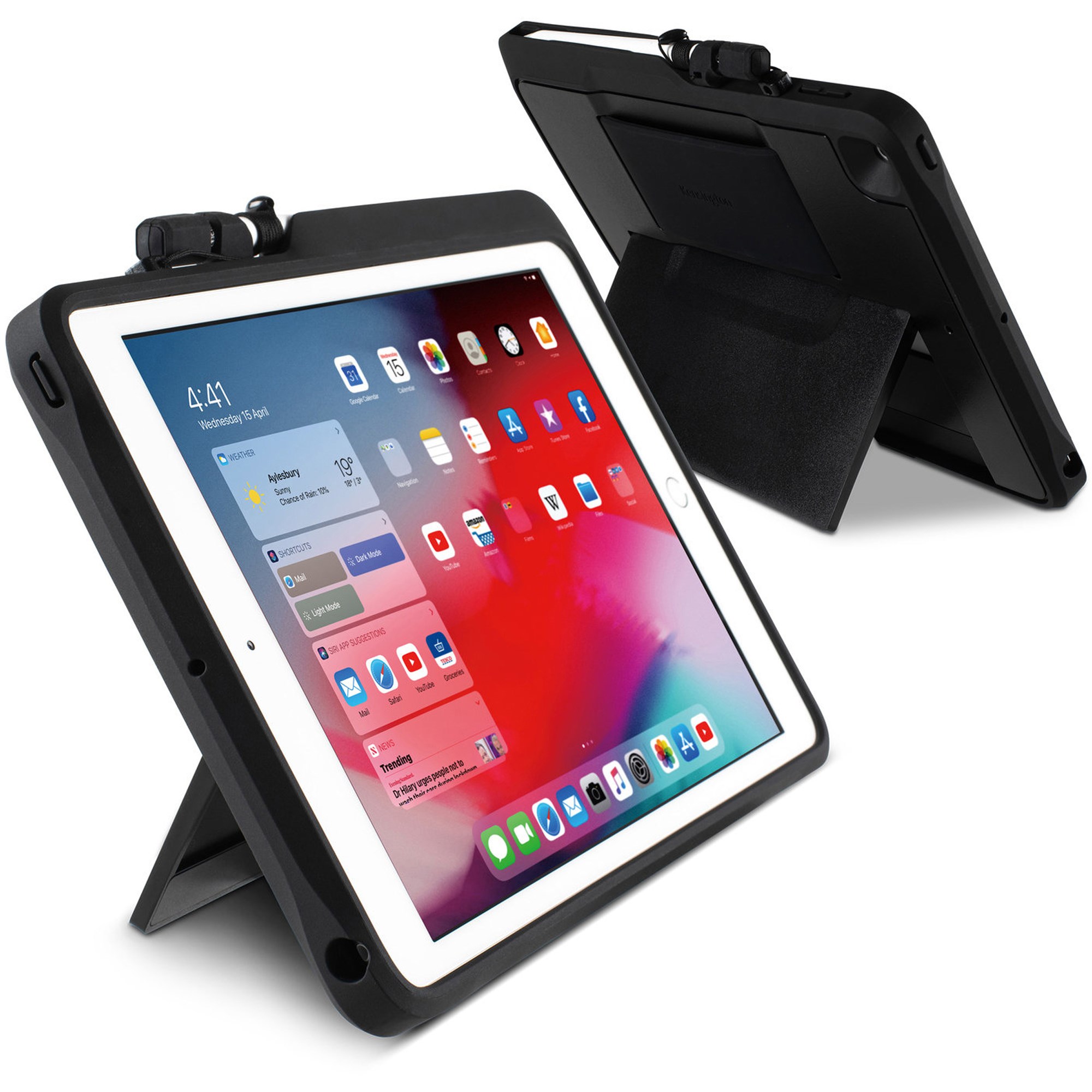 Built with military-grade protection for any environment. Meets MIL-STD-810H Method 504.3 Contamination by Fluids and MIL-STD-810G drop testing. Infinitely variable kickstand delivers the perfect angle when typing, reading or collaborating to help increase comfort and reduce eye, neck and wrist strain. Ideal for active environments, offers full access to all ports Use the on-screen keyboard while on the go pair with a Bluetooth keyboard when in the office. Case not compatible with Apple Smart Keyboard. Self-adjusting hand strap provides a firm grip when in use and stows when not in use to allow iPad to lie flat and stable. Pencil holder and tether conveniently secures and stores Apple Pencil. Easy to install screen protector (included) helps prevent scratches. Asset tagging area allows for easy identification in classrooms, offices or collaborative environments. Full access to all ports.