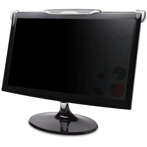 Simple, quick and convenient spring-loaded mount secures to the monitor bezel without hassle or adhesives so you can easily take the privacy filter on and off your monitor. Narrows the field of vision on the monitor to +/- 30 degrees. Filters harmful rays by up to 30%, which is helpful as blue light has been shown to interrupt sleep. Hard-coated film protects sensitive screens from smudges and damage. Textured surface with light tint minimizes glare and improves contrast. Frame-free construction clings to monitor and wonnt obstruct controls or speakers.