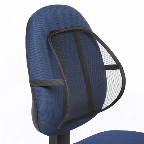 Mesh design increases air flow. Easy to remove and reposition. The back rest is easy to attach to most office chairs. Relieve back strain from sitting for long periods. Measures 410W x 435D x 700mmH.
