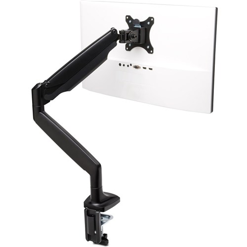 One-Touch Adjustable Arm with built-in gas spring simplifies height adjustment(170mm-505mm) and provides 180 degree swivel and monitor rotation. Has +/- 90 degree tilt adjustment and allows monitor to smoothly move up, down, forward and back for full motion articulation. Stability focused design supports 13-32 inch flat or curved monitor weighing up to 9kg and ensures monitors are stable and steady in any position. SmartFit® System simplifies ideal ergonomic height positioning using scientifically proven research. Easy to Install with quick release detachable VESA plate , c-clamp and grommet installation options. Cable Management System keeps monitor cables organized for a tidier workspace. Easily switch from landscape to portrait mode. Kensington Durability meets ANSI/BIFMA performance and safety standards.