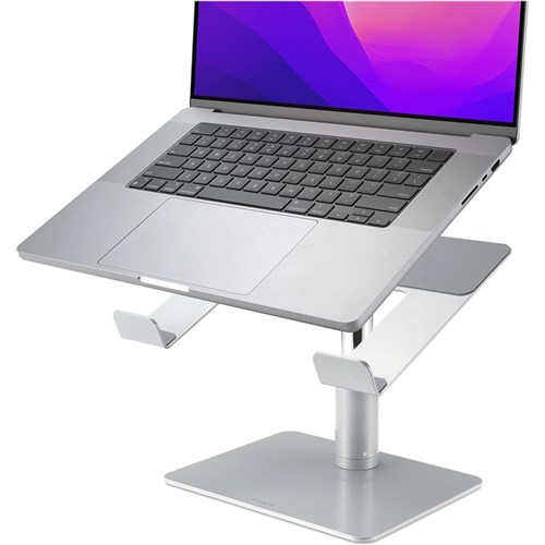 Allows user elevate the screen to eye level for optimum viewing angle. Provides variable height/angle adjustment for optimal viewing. Height adjusts from 15cm - 20cm; Angle adjusts from 0 - 45 degrees. Helps promote air circulation, aiding performance and battery life. Provides space to stow external peripherals for a tidy desktop environment. Protect laptop from being scratched and keep device in place while you work. Safety Ledge Stopper helps prevent devices from slipping. Supports laptop screen sizes up to 16 inches. 8kg max weight.