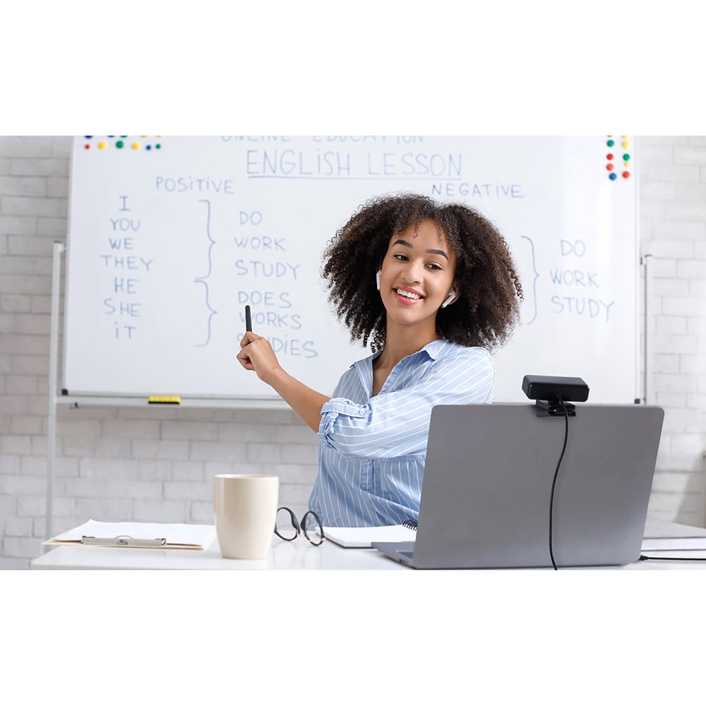 Optimised for video conferencing applications, this webcam delivers crisp high-quality video, omni-directional sound, and a cohesive software and accessory experience. Integrated software simplifies customising your video settings with the click of a button. An integrated lens cover lets you easily control who sees you. Use the electronic pan, tilt, and 2x zoom (ePTZ) to optimize your video frame. Sound your best - A built-in omni-directional microphone incorporates noise-reduction technology. Accommodates both USB-A and USB-C devices like laptops and desktops. Provides a powerfully flexible experience 2 Year Manufacturer's Warranty.