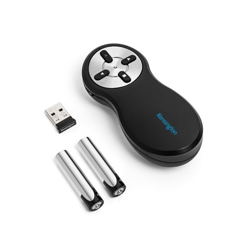 USB enabled. Plug the wireless receiver in and start using straight away. Intuitive four-button layout lets you easily go forward and back on your PowerPoint or Keynote slides, while the other two buttons let you hide your screen and play a PowerPoint slideshow. Range of up to 19 metres. Laser-free design is an ideal solution for locations where laser devices are not permitted. Roam the room with ease during your presentation. Battery compartment also provides a handy internal storage space for the wireless USB nano receiver when not in use. Each receiver and presenter are uniquely paired to prevent interference. Compatible for use with Windows 7 and 8, Vista, XP and Mac OS X. On/off switch lets you turn the presenter off to conserve battery power when not in use.