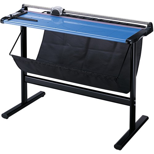 Strong, sturdy, standup, metal cutting base with tray to catch cuttings Ergonomic replaceable cutting head with self-sharpening rotary blade Transparent hand guard clamps on to paper while cutting Adjustable paper guide, Scale marking with DIN paper sizes Includes sturdy steel stand (assembly required) Cuts up to 10 sheets (80gsm paper)