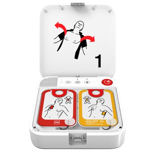 Self-monitoring. Communications - USB. cprINSIGHT analysis technology. Layered design with easy to follow bold graphics. Both trained and untrained AED users clearly know how to begin. Highest available escalating energy - up to 360J for more effective shocks as needed. Quik-Step Electrodes - Peel directly off the base for faster placement. cprINSIGHT Analysis Technology - Analyses for shockable rhythm during chest compressions with no need to pause. Metronome and CPR Coaching - Sets an effective pace and audibly guides users. ClearVoice Technology - Detects background noise and adjusts volume accordingly for clear instruction. Semi-automatic. Bilingual - Toggle between two pre-set languages when using the device. Child mode delivers lower energy levels appropriate for young children without having to change electrodes. LIFEPAK TOUGH - IP55 rating for challenging environments. Comes in carry case. LIFELINKcentral AED Program Manager - Monitor AED programs by tracking AED status, sending patient data to emergency responders and hospitals, detecting AED locations and other tools. 8 Year Manufacturer's Warranty.