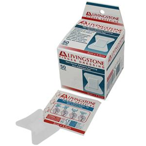 Livingstone Adhesive Joint Finger Dressing, 5 x 4.5cm, Medium, "H" Shape, Non-Adherent Pad, Non-Woven, Sterile, 50 per Box
