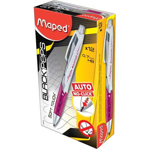 Maped's Black Peps Automatic Mechanical Pencil features an automatic mechanism enabling easy, continuous lead feeding - No more clicking required! Comfort soft grip.