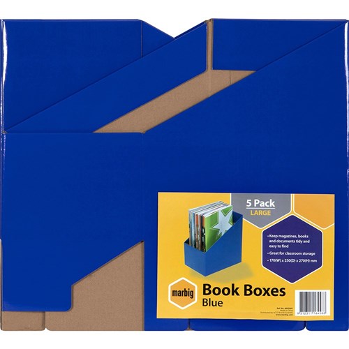 Marbig Book Boxes Large 170W x 250D x 270mmH Blue Pack Of 5