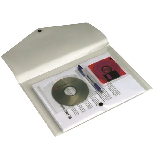 Stylish, versatile document holder with pen holder, disk holder and CD holder, allowing you to carry your disks safely. Recyclable strong polypropylene resists moisture and tearing.
