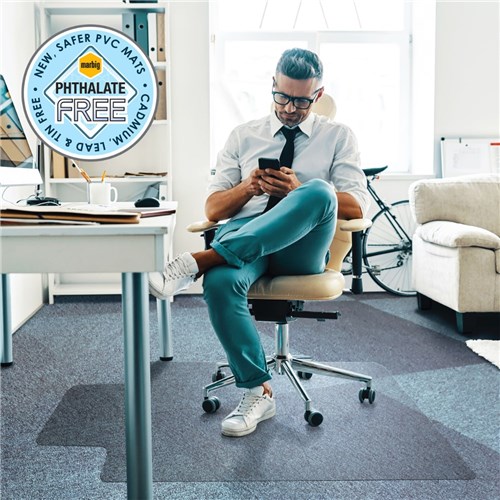 Marbig Deluxe Chair Mat Notched Based For Medium Pile Carpet 90 x 120cm Clear