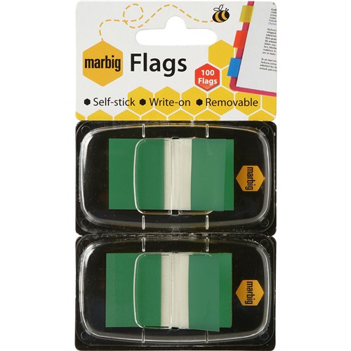 Marbig Flags Coloured Tip Twin Pack 25x44mm 50 sheet per pack Green Pack Of 2