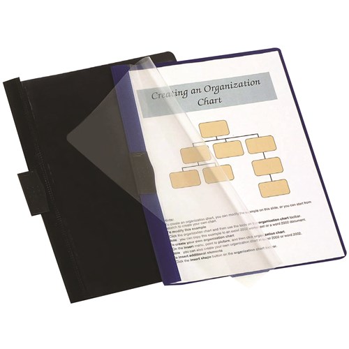 Marbig Kwik Clip Flat File A4 Clear Cover Punchless Fitting Black