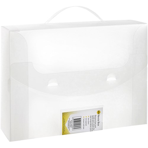 A range of document storage boxes in 3 sizes that "nest" inside one another - creating a neat, organised, space-efficient and easily transportable filing system. Purchase as individual components for creation of a customised system. Suitable for A4 and foolscap documents. Long-lasting polypropylene construction with slide-out carrying handle. Translucent matte finish for easy document identification. Dimensions: Mini - W340xL244xH21mm; Midi - W345xL248xH50mm; Maxi - W350xL252xH122mm.