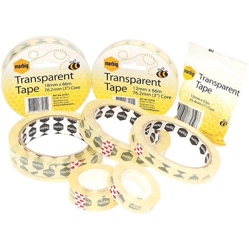 Marbig Office Tape 18mm x 66m 76.2mm Core Clear